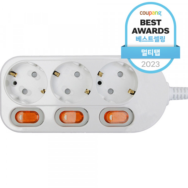 번개표 이동형 멀티탭 콘센트 절전형 개별스위치 3구 WI-MC21633, 1.5m, 1개[8,880원]