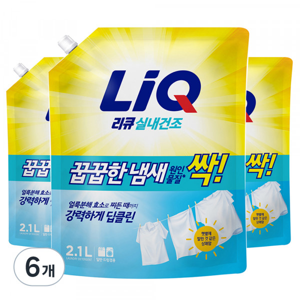 리필, 2.1L, 6개 리큐 진한겔 꿉급한 냄새울- 싹! 실내 건조 시에도 햇볕에 말린 듯한 상쾌함! LiQ진한 겔!... 피지얼룩제거 리큐 진한겔 꿉꿉한 냄새 제거 세제 리필, 2.1L, 6개 찌든때부터 냄새 원인물질*까지 강.력....