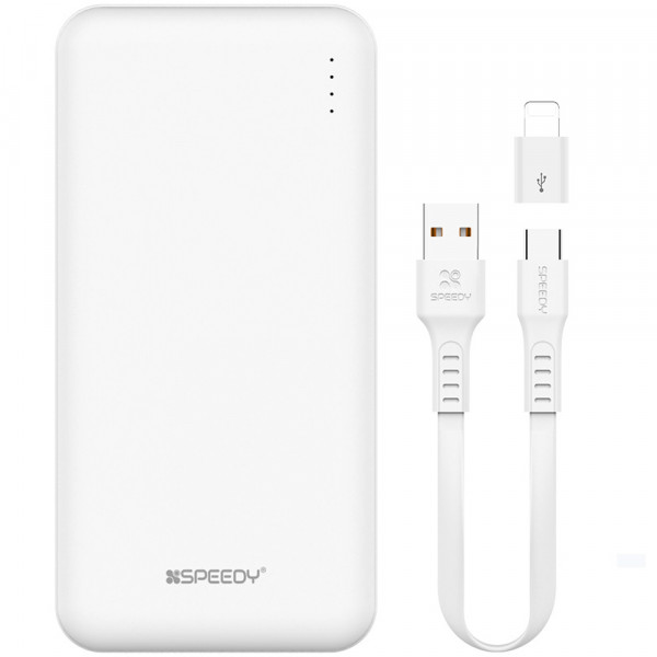 SPEEDY 슬림 듀얼 보조배터리 10000mAh + C타입 케이블 + 8핀 젠더, BND-2PCPPB100A, 화이트