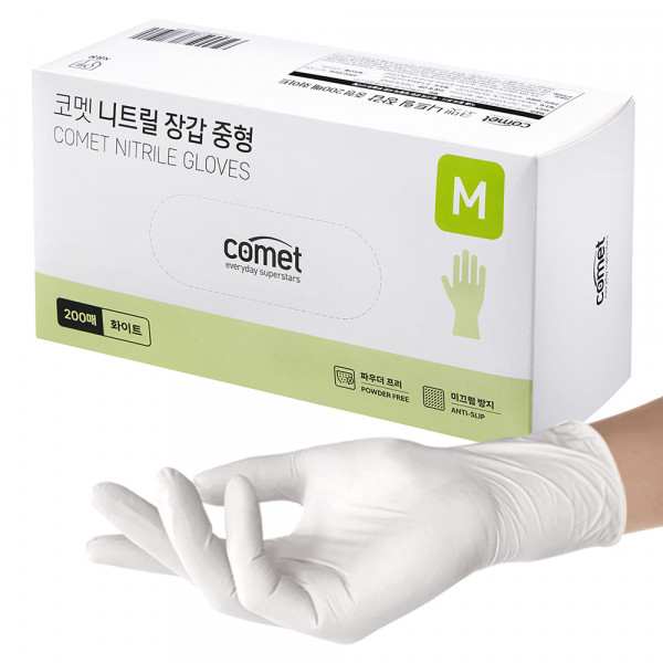 코멧 니트릴장갑 화이트, 중형(M), 200매입, 1개[11,990원]