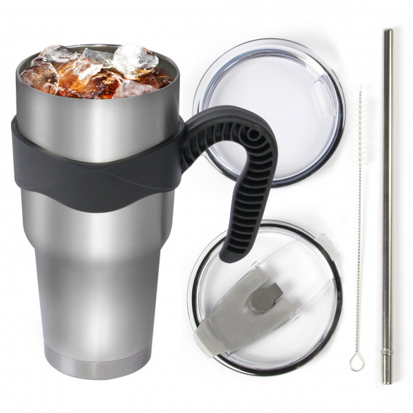 키에 이중 진공 스테인리스 텀블러 900ml + 핸들 + 뚜껑 2종 + 스테인리스 빨대 + 빨대 클리너 세트[11,590원]