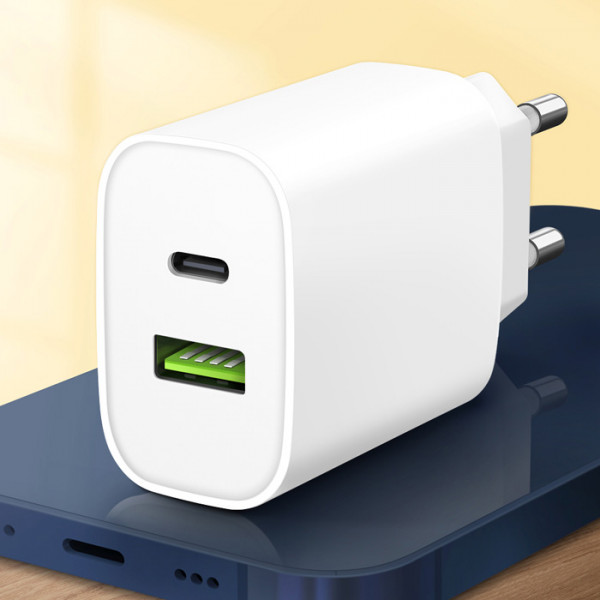 홈플래닛 PD20W 2포트 (type-C usb-A) 고속충전기 (애플 아이폰 15 14 호환), 화이트, 1개[9,090원]