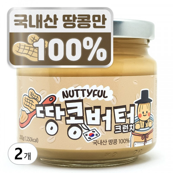 너티풀 국내산 100% 무첨가 피넛버터 땅콩잼 땅콩버터 크런치, 2개, 200g[20,400원]