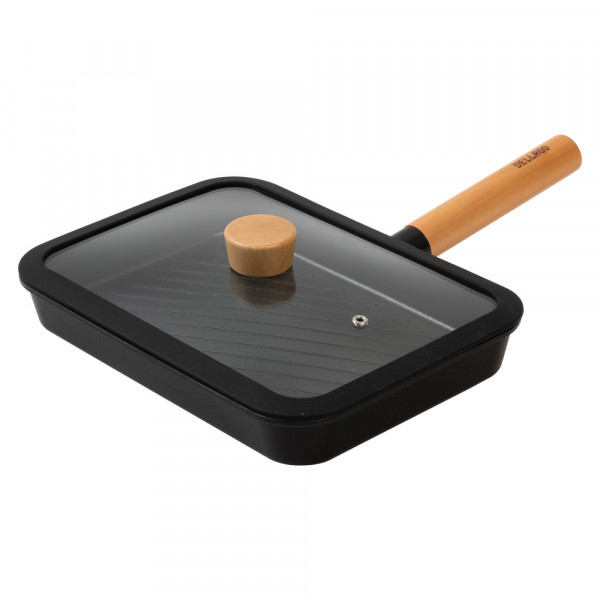 제격 델라고 우드 IH 통주물 사각 그릴팬 실리콘유리세트 색상 베이지, 블랙으로 구성 전체가 통주물... 더해줘요 팬 내부 그릴처리의 오일로드 기능으로 수분 및 기름이 빠져나가지 않게 하여 표면은 바삭하고...