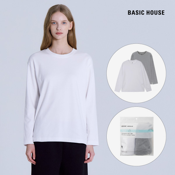 베이직하우스 여성용 40수 릴렉스핏 라운드 긴팔티셔츠 2종 세트