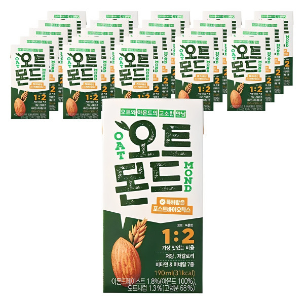주요 특징 오트몬드 오리지널은 오트와 아몬드를 1:2 비율로 블렌딩한 저칼로리(190ml 당 31kcal), 저당(당류 0.8g) 식물성 음료입니다. 24개입 박스로 구매했는데, 개별 포장이라 휴대성이 좋고, 유통기한도...