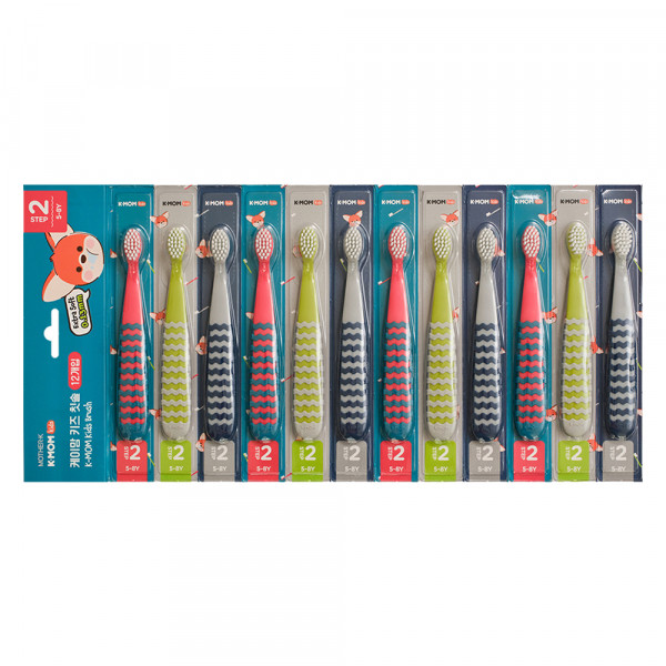 케이맘 키즈 칫솔 2단계, 캔디핑크 + 스트라이크 그레이 + 애플라임, 12개입, 1세트[10,870원]
