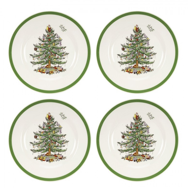 스포드 포트메리온 크리스마스 트리 접시, 아이보리 + 레드 + 그린, 4개