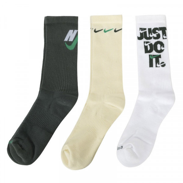 나이키 남녀공용 에브리데이 플러스 쿠쉬 크루 트렌드 스포츠 양말 3개입 DH3822-901, 코코넛 밀크, 화이트, 그린 파티나