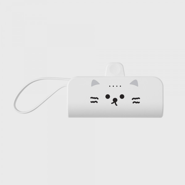 어프어프 미니 일체형 도킹형 보조배터리 5000mAH (C타입 8핀) 거치 가능, 치치 페이스-WHITE(도킹형 보조배터리)
