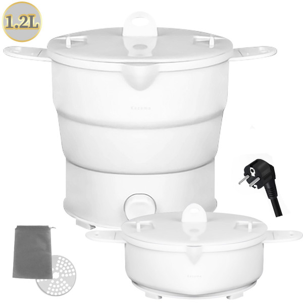 Kazama 접이식 라면포트 여행용 라면포트 접이식 휴대용 전기 라면포트 1.2L 캠핑주전자 보리차 커피 어묵 밥 온열 가능 찜기+수납가방 실리콘 라면포트 459, 1