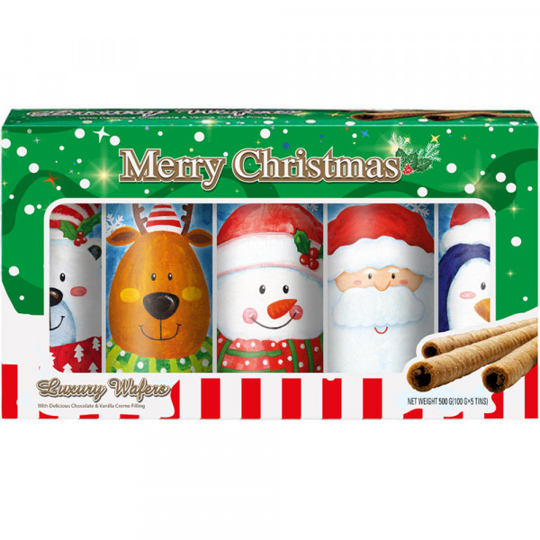 켈슨 크리스마스 럭셔리 웨이퍼 선물세트 그린, 초코웨이퍼 3p + 바닐라웨이퍼 2p, 1세트