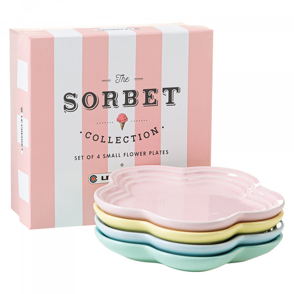 르크루제 소르베 플라워 접시 세트 S, 1세트, 4종, 쉬폰핑크 + 엘리제옐로우 + 코스탈블루 + 쿨민트