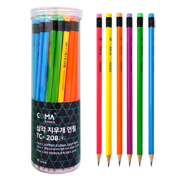 투코비 코마 삼각 지우개 연필 B TC-208 48p, 혼합색상, 1개 구경하러가기