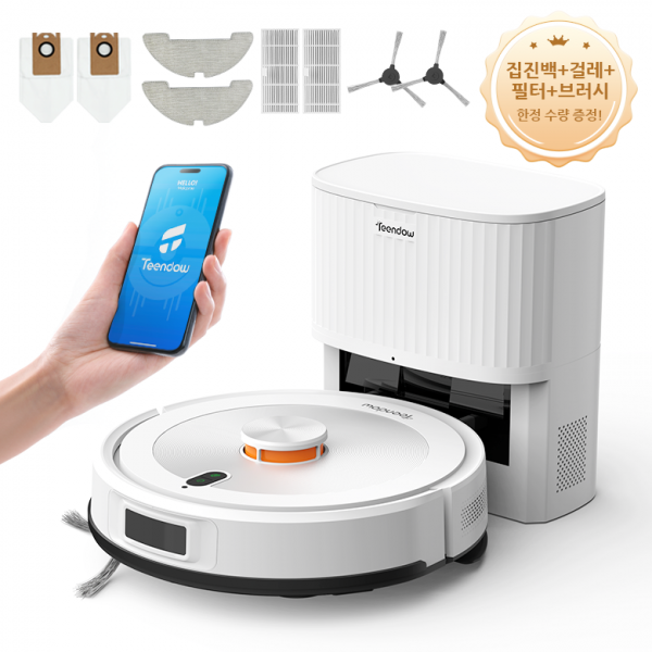 [2025년형]Teendow 고성능 LDS센서 먼지비움 로봇청소기 전용앱연동+물걸레 패드*2+필터*2+사이드 브러시*2+1년보…