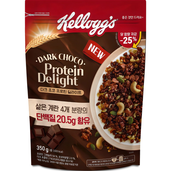 켈로그 다크 초코 프로틴 딜라이트 그래놀라 시리얼, 350g, 1개[5,400원]