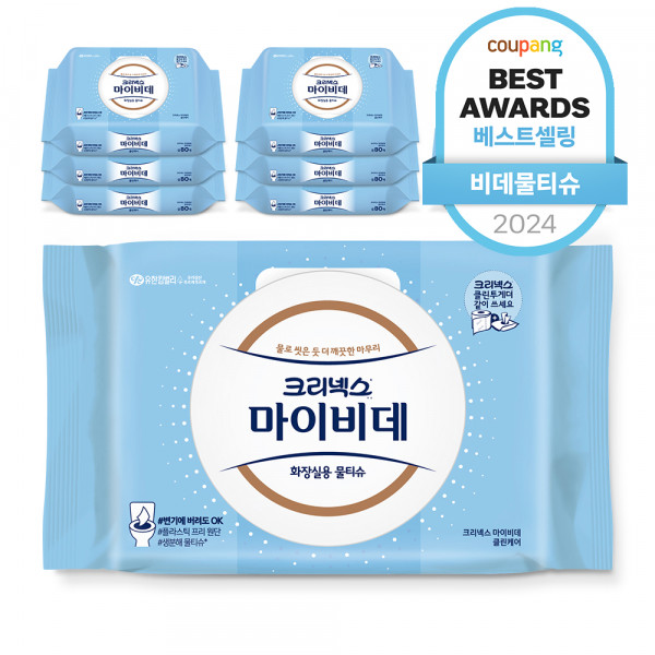 마이비데 클린케어 화장실용 물티슈 캡형, 80개입, 8개[18,170원]