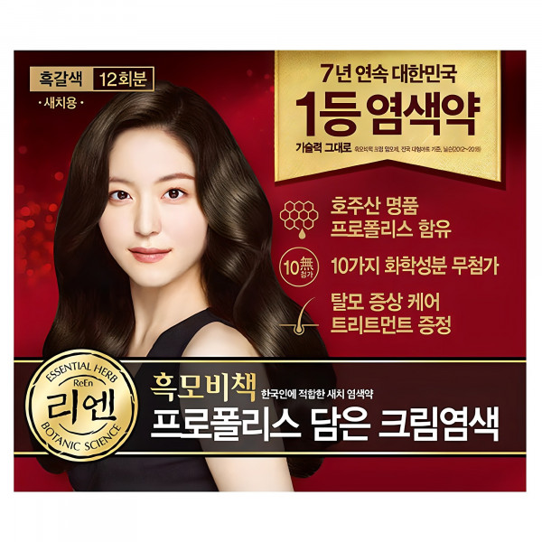 리엔 흑모비책 프로폴리스 담은 크림 염색제 새치용 12회분, 흑갈색, 1개 정을 담은 강력한 성분& 부담 없는 사용 리엔 크림 염색제는 12회분으로 구성되어 있어 가성비가 뛰어납니다 특히 부담 없이 쉽게...