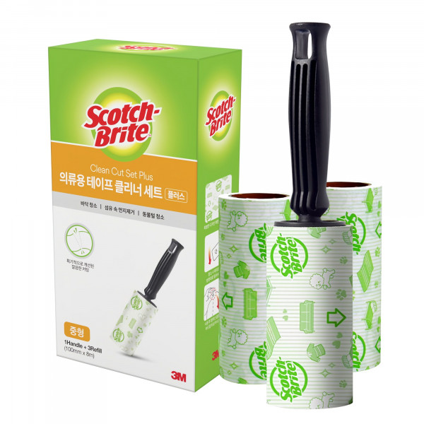 스카치브라이트 의류용 테이프 클리너 세트 플러스 핸들 + 리필 3개, 1세트, 100mm x 8m[6,940원]