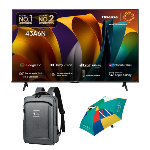 HISENSE 4K UHD LED 스마트TV 43A6N + 3단우산 + 백팩, 108cm(43인치), 스탠드형, 고객직접설치 구경하러가기