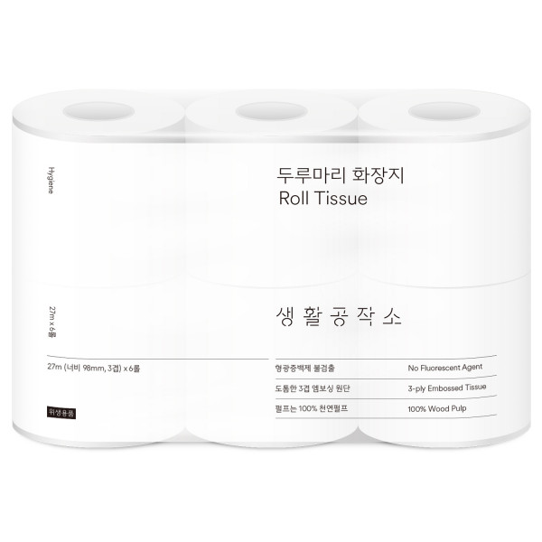 생활공작소 두루마리 천연펄프 3겹 고급롤화장지, 27m, 6개입, 1개[5,720원]