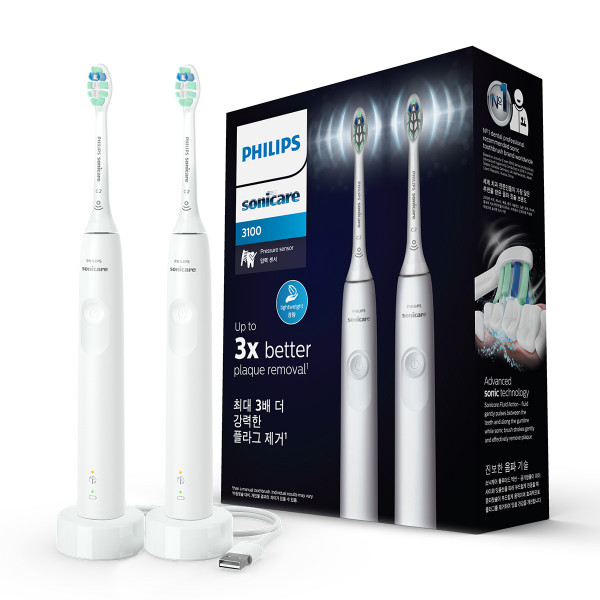 필립스 소닉케어 3100 시리즈 더블 핸들 전동칫솔, HX3675/23, 화이트, 1세트 구경하러가기