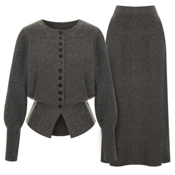 샐리 버튼슬릿 골지 니트 가디건 + 스커트 세트 I4C-CSE013