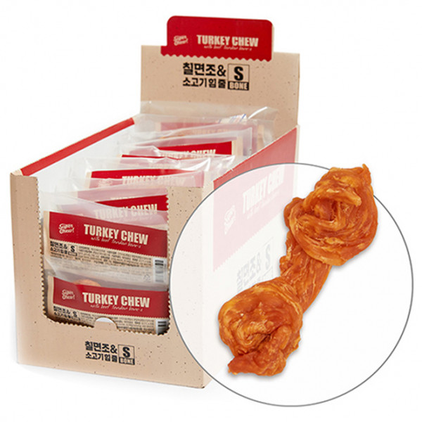 칠면조와 소고기 조합으로 만들어져 있어, 반려견이 좋아하는 맛을 제공합니다. 탄력 있는 씹는 맛... 슈퍼츄 칠면조 소고기 힘줄 본타입 S 껌은 **20개**의 껌이 한꺼번에 포장되어 있어, 간식 시간에 맞추어...