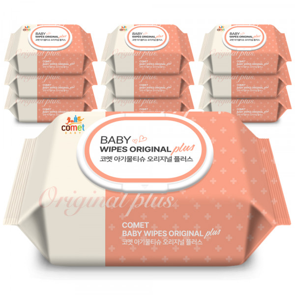 코멧 오리지널 플러스 대용량 아기물티슈 엠보싱 캡형, 50g, 120개입, 10개[10,690원]