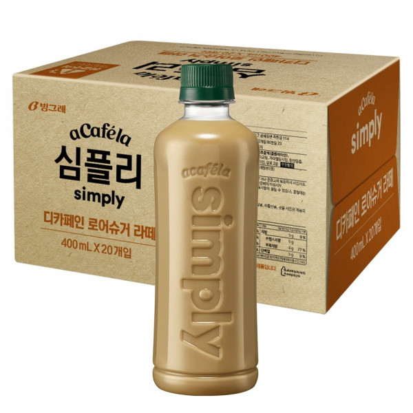 아카페라 빙그레 심플리 디카페인 로어슈거 라떼 무라벨, 20개, 400ml[23,920원]