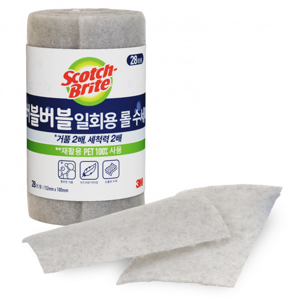 스카치브라이트 3M 버블버블 일회용 롤 수세미, 1개, 28개입[3,990원]