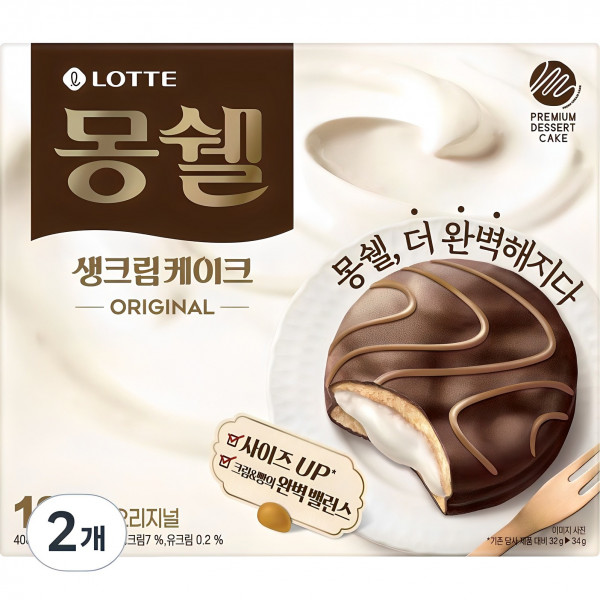몽쉘 생크림케이크 오리지널 12개입, 408g, 2개[7,700원]