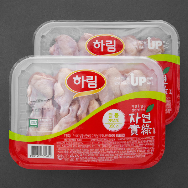 하림 자연실록 무항생제 인증 닭봉 윗날개 (냉장), 350g, 2팩