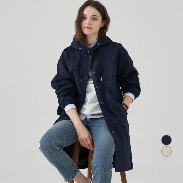 ELLE PARIS 루즈핏 후드 롱 야상 점퍼