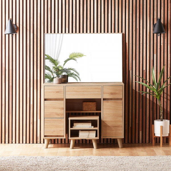 파로마 데이지 수납 화장대 + 스툴 세트 방문설치, 오크[109,000원]