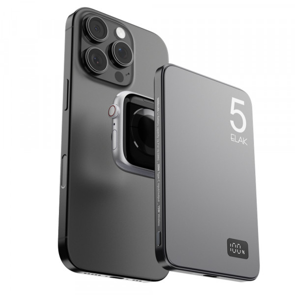 엘락 3 in 1 에어팟 애플워치 충전 초슬림 초경량 무선 맥세이프 고속 충전 보조배터리 5000mAh, 티타늄 블랙, DS-21 구경하러가기