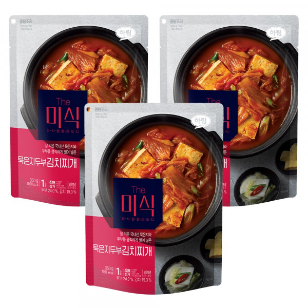 The 미식 묵은지두부 김치찌개 중량: 350g (1인분) 열량: 150kcal 주요 원재료: 두부 24%, 김치 19.3% 특징: 잘... 느낌이 더 강했어요. 국물 색은 얼큰해 보이지만 건더기는 좀 부족 사진 속 푸짐한 김치찌개 이미지를...