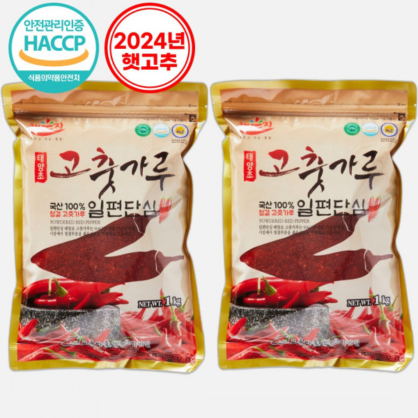 [24년햇고추] 국산 일편단심 해풍에 말린 태양초 고춧가루 일반 보통맛 / 최근제조 / 김치양념용, 1kg, 2개