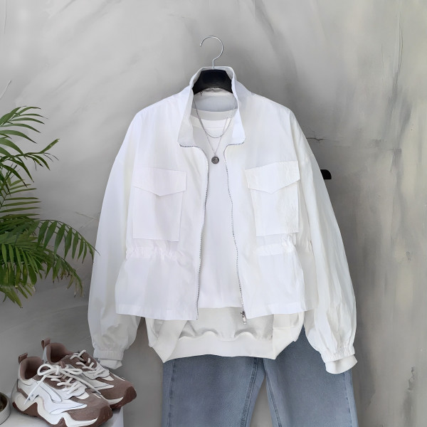 행복여 프랑 포켓 스트링 바람막이 야상 점퍼