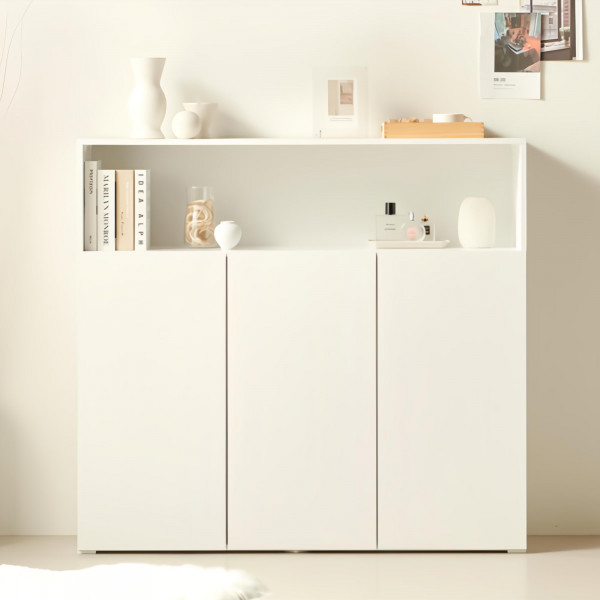 룸앤디 국내 제조 뉴모던 3단 상부오픈형 높은 수납장 방문설치, 화이트