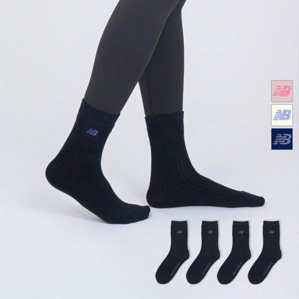뉴발란스 여성용 자수 로고 중목 골지양말 4켤레