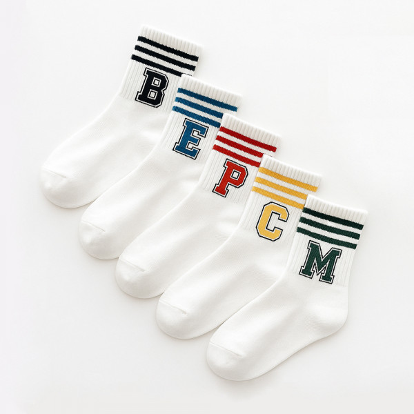 아이뿜 아동용 알파벳 스트라이프 미끄럼방지 양말 5켤레 세트 B10